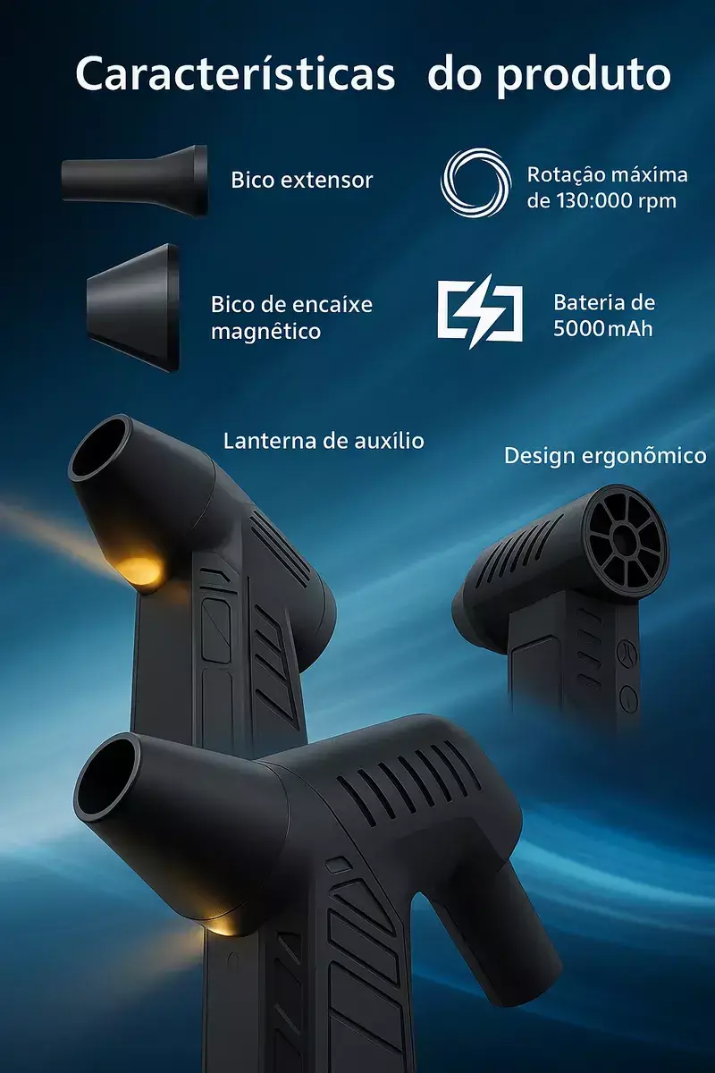 Mini Ventilador / Soprador de Ar Turbo Jato 130.000 Rpm Sem Fio